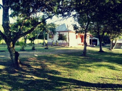 - Árvores frutíferas e com vasto espaço para colocação de rede de descanso, ampla área de sombra e acampamento;