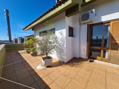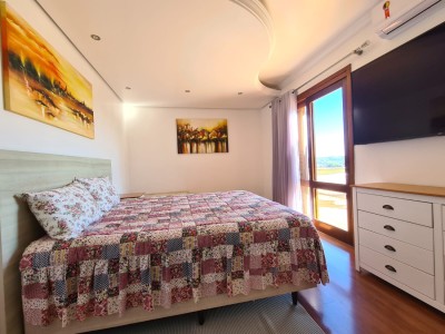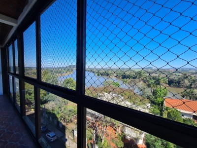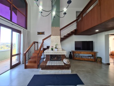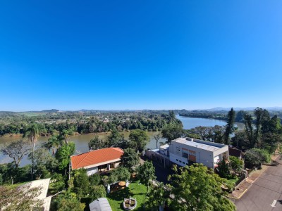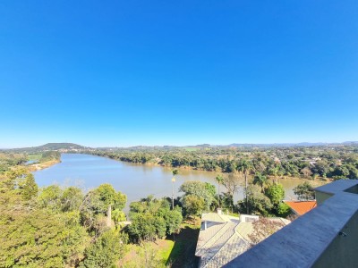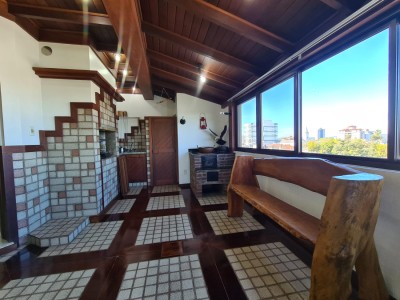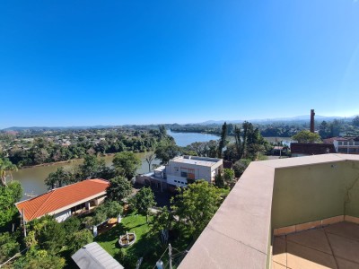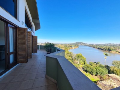 Descrição › Cobertura mobiliada no centro de Estrela, com vista maravilhosa para o Rio Taquari! 4 dormitórios, escritorio, mezanino, terraço em todas as laterias, lareira, 2 cozinhas, área gourmet com fogão de chapa e churrasqueira. 2 vagas de garagem.
