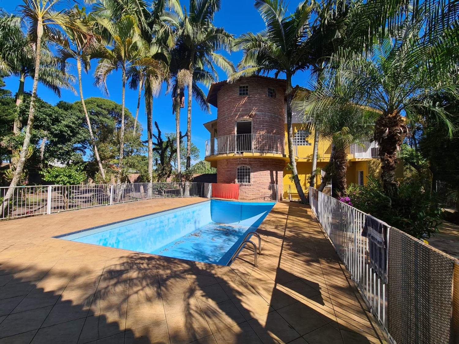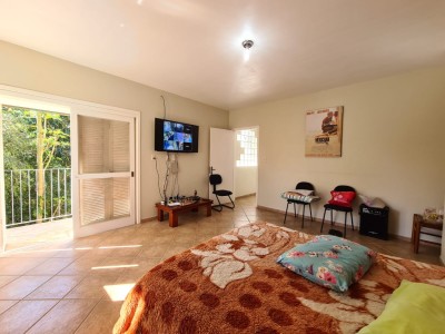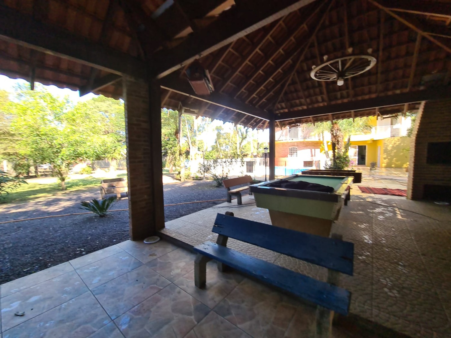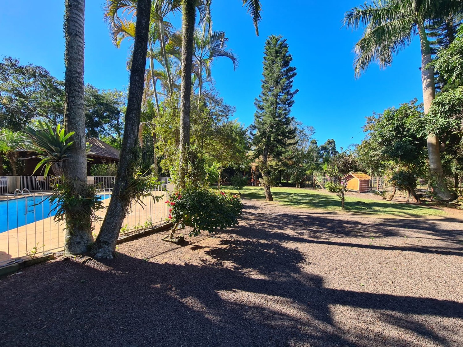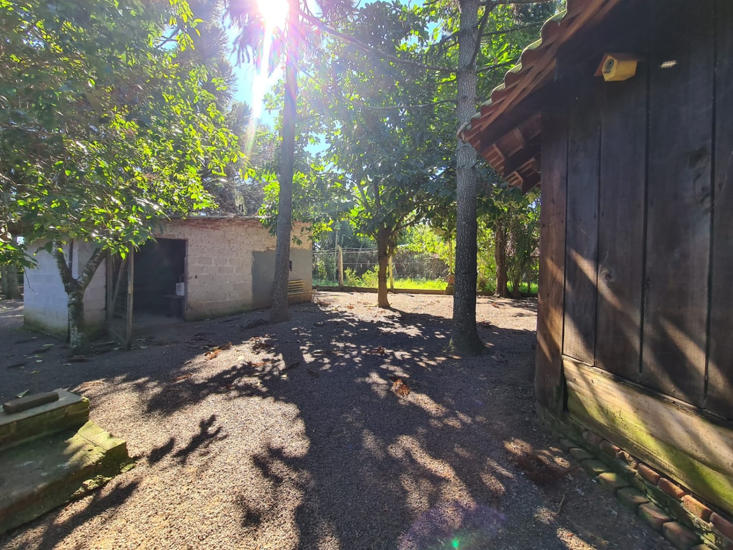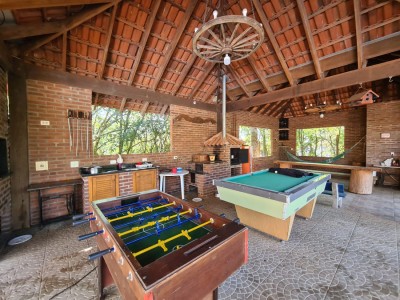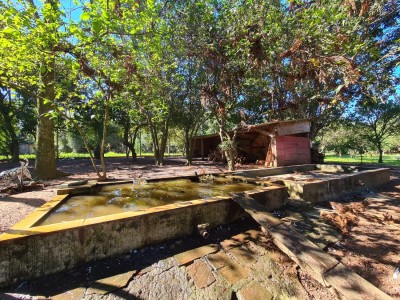 Descrição › Sitio de 5.000 m2 (meio hectare) toda cercada, com casa de 2 andares contendo 2 dormitórios na parte superior e banheiro. Piscina, quiosque, 2 canis, horta cercada, pomar contendo diversos tipos de frutíferas e acesso a pé ao Rio Taquari no fundos da propriedade. Propriedade cercada, com luz e água.
