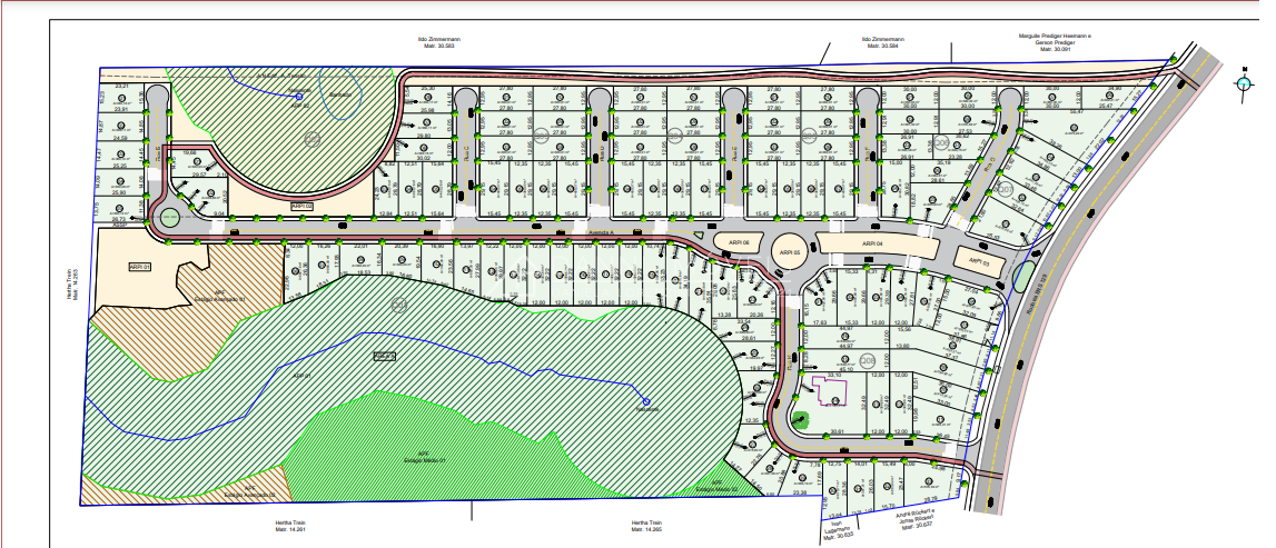 Descrição › Loteamento com restrição de metragem de construção. Residencial unifamiliar para casas acima de 100m; 03 terrenos a partir de 360m | residencial e comercial; 4 hectares de área verde preservada; boulevard central com rótula, praça, ciclovia e pista de caminhada; a área já conta com uma casa centenária, onde funciona o Bistrô Pier129, na rota turística e gastronômica do Vale do Taquari.