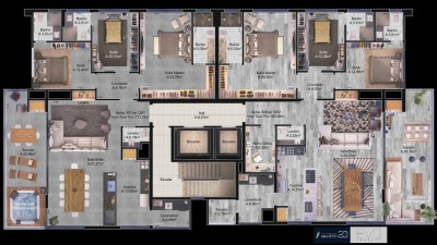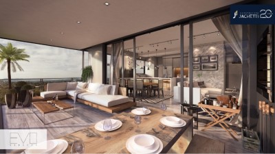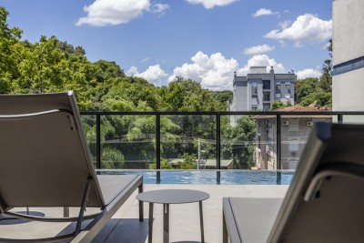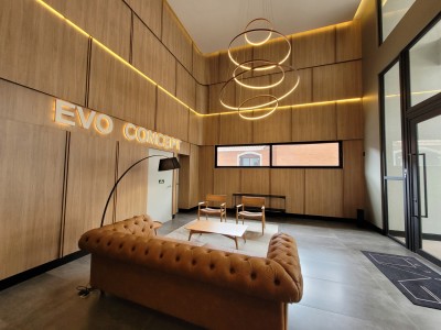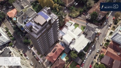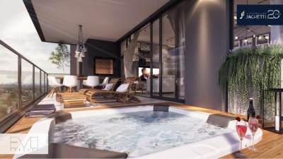 Descrição › Predio com 2 elevadores, sendo um maca-leito, PUB e Academia mobiliados e decorado, piscina com borda infinita e iluminação de led, Guarita, hall de entrada com pé direito duplo decorado, portaria com biometria, 2 entradas (frente e fundos), Geração própria de energia (fotovoltaica) na área de condomínio, espera para gerador, captação de água da chuva, pé direito nos apartamentos com mínimo de 3,00 m de altura, espera para automação, vedação acústica entre lajes, esquadrias em PVC com vidro duplo, detalhes em concreto aparente e revestimentos com porcelanato madeira, coroamento em pergolado, iluminação led na lateral da fachada, espera para hidromassagem nas sacadas (fica na mesma linha do piso).