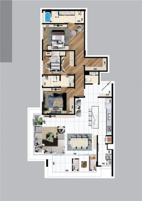Descrição › Prédio com sacadas abertas (possibilidade de fechar durante a obra), localização privilegiada, proximo de mercado, escola, farmácias, padaria e demais comércios, a 5 minutos do centro, com salão de festas e hall de entrada decorados
