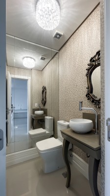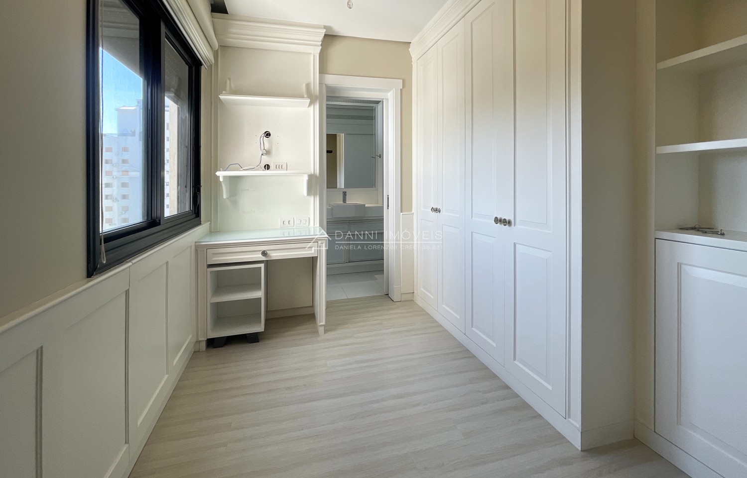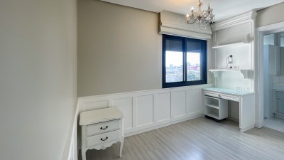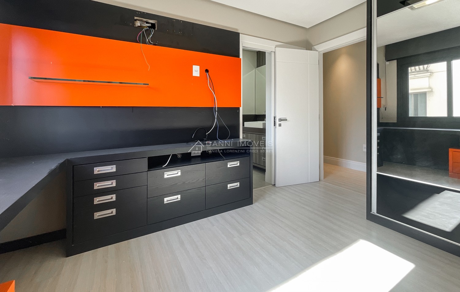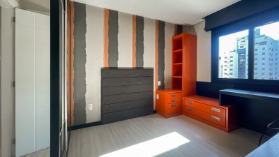 Descrição › Apartamento com guarita 24 hrs! Possui 2 suítes individuais e dois dormitórios com banheiro tipo suíte americana. Semi mobiliado, permanecem todos os móveis e eletros conforme fotos. Prédio com localização excelente! Fica a apenas duas quadras do CEAT, duas quadras do Hospital Bruno born e duas quadras do Clube CTC! Orientação solar leste / norte!