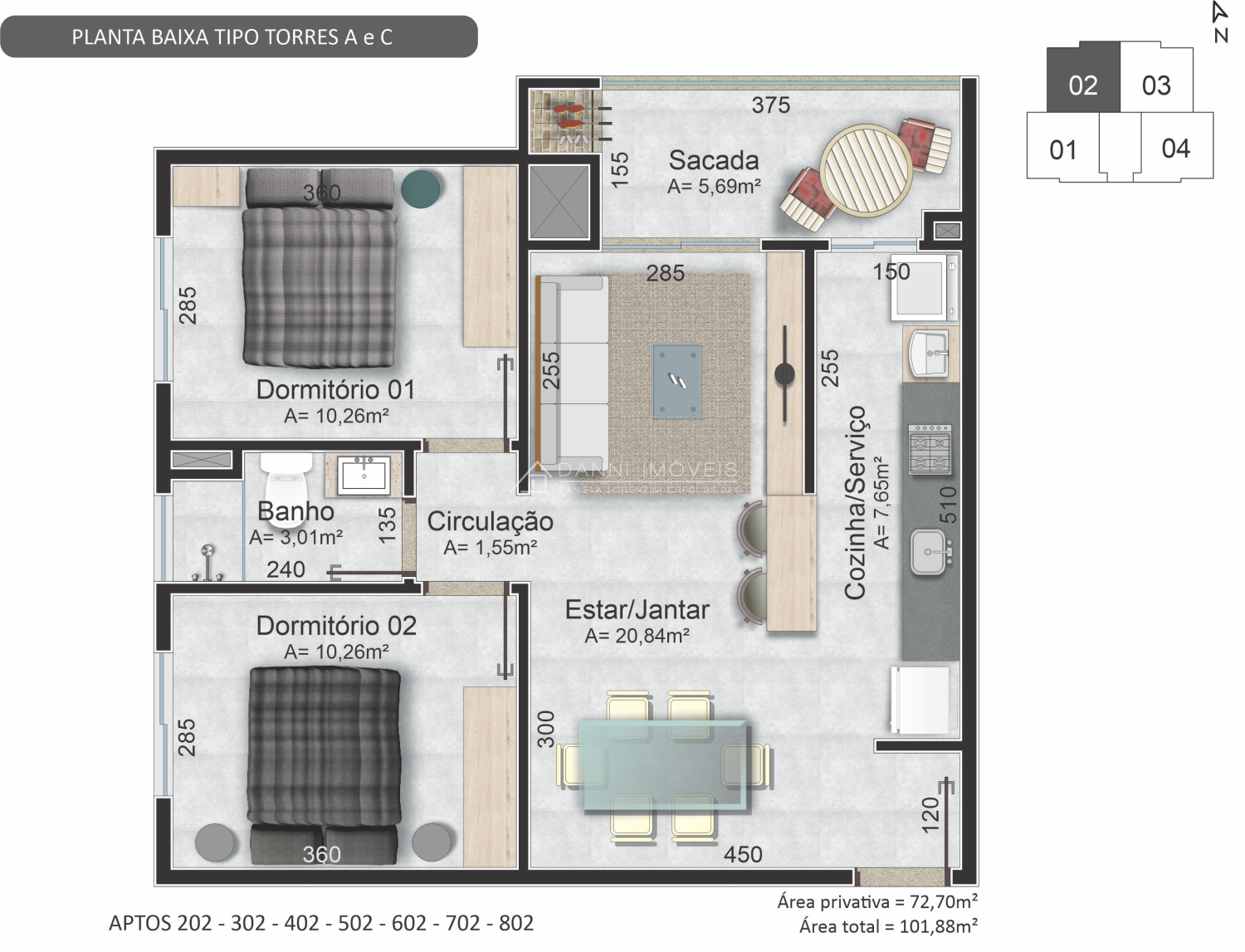 Área Total › 84,70m²