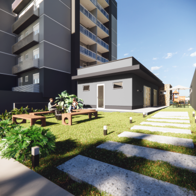 Descrição › Sacada com churrasqueira. Condomínio com salão de festas, fire place, mini circuito de bicicleta, safari kids, pomar com horta, espaço gourmet. Torre Sun, em construção.
