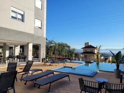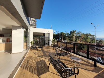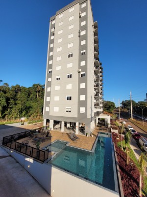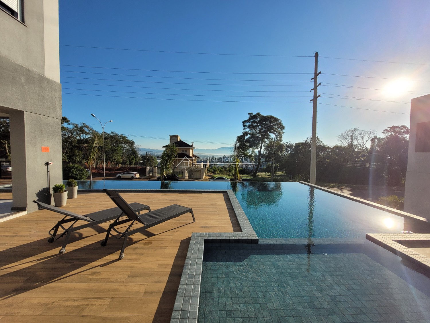 Descrição › Apartamento de canto, de fundos com vista para a região do centro da cidade e área verde do loteamento, semi mobiliado! Configuração está com 2 dormitórios e living estendido, porem pode ser transformado novamente em 3 dormit[orios.