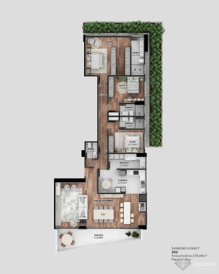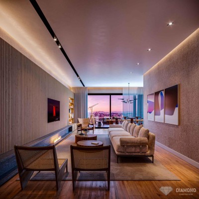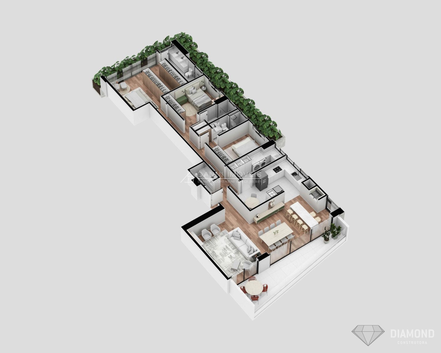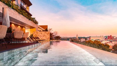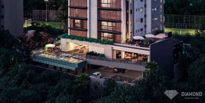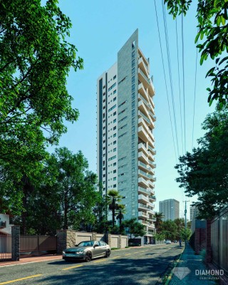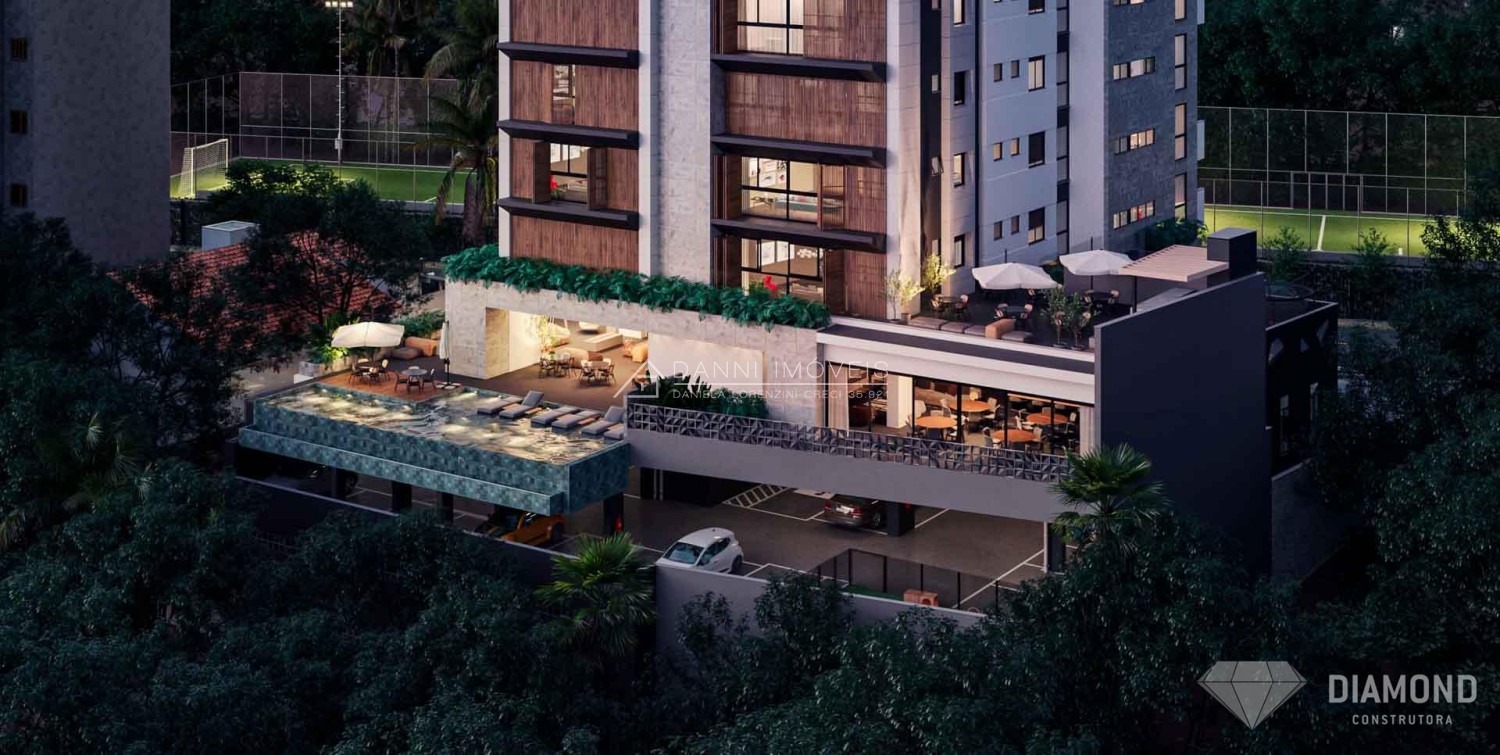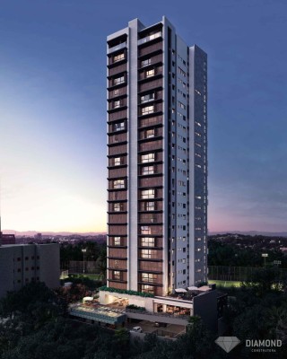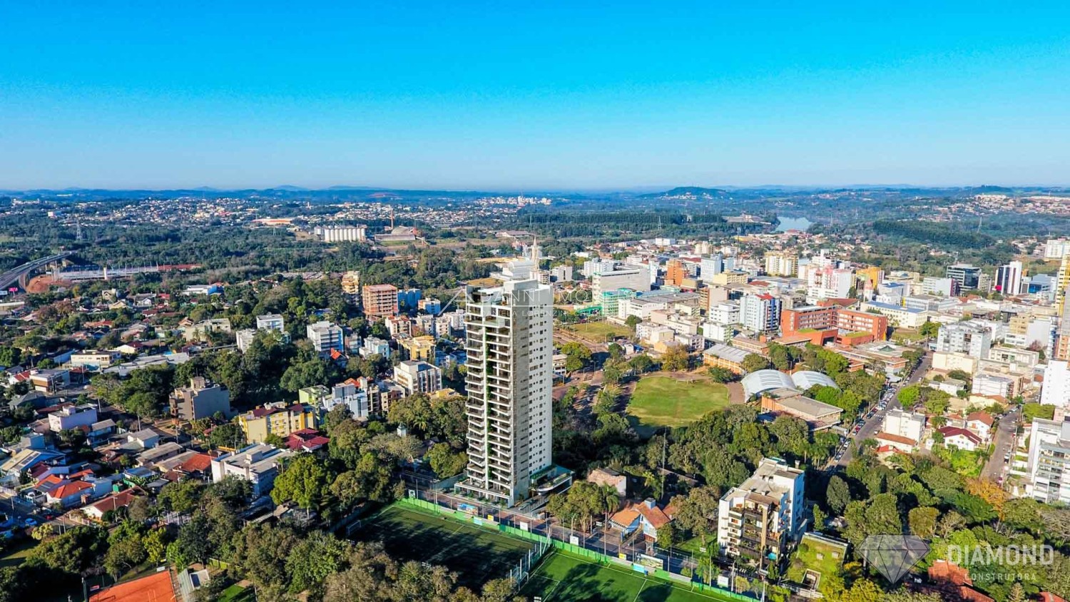 Descrição › Edifício de frente para o Clube Tiro e Caça, composto de 24 pavimentos com lojas térreas e apartamentos. 2 apartamentos por andar, sendo unidades com 3 suítes, 4 suítes duplex, 4 suítes unificado com terraço e piscina, cobertura duplex com 3 suítes com terraço e piscina de borda infinita. Prédio possui infraestrutura completa com Hall de entrada, piscina com borda infinita, Salão de Festas, Espaço Grill, Espaço Kids, Academia equipada, Louges, Bicicletário, Espaço Pet, Playground e Espaço Games. Os apartamentos contam com Living com espaço gourmet, Sacadas amplas, área de serviço separada, espera para split e água quente e vidros duplos nos dormitórios. Prédio com paisagismo diferenciado, 2 elevadores de última geração e guarita de segurança com vigilância por câmeras. Acabamentos personalizados a escolha do cliente*.