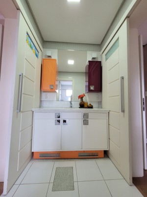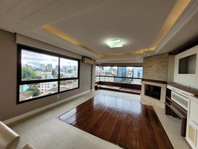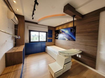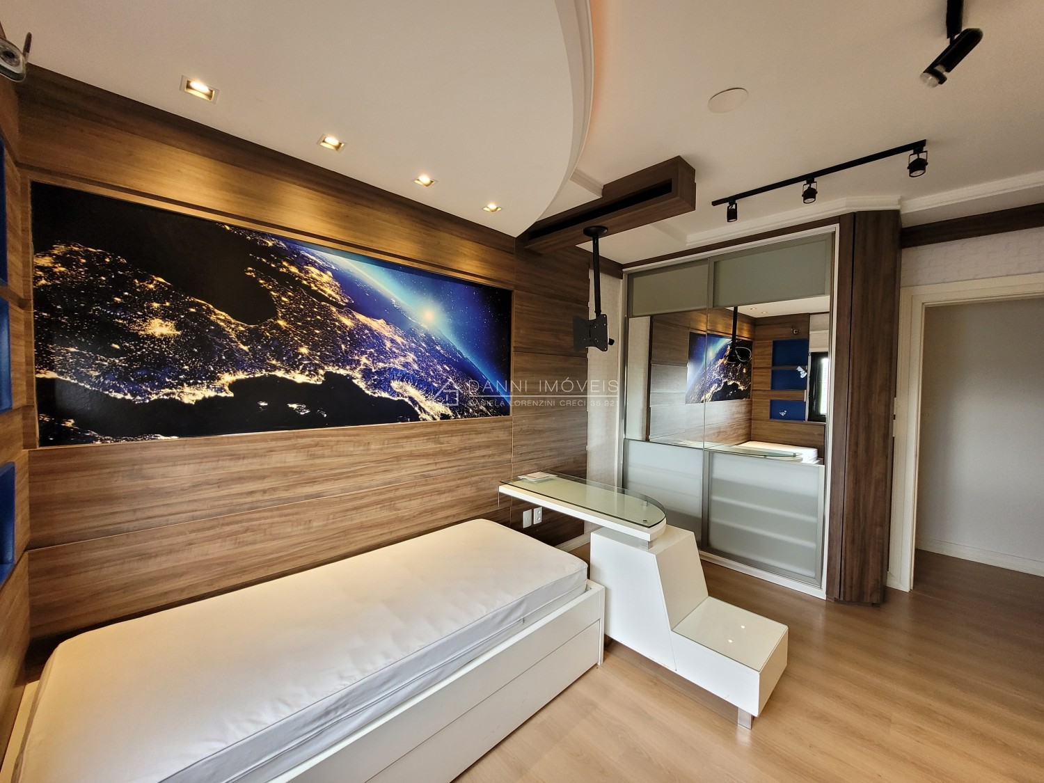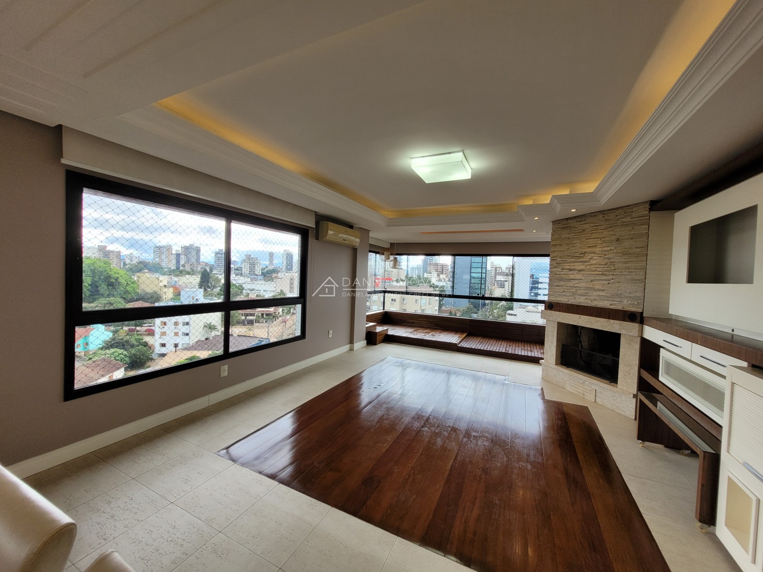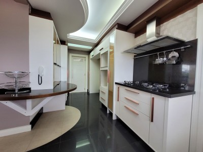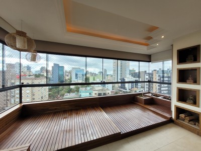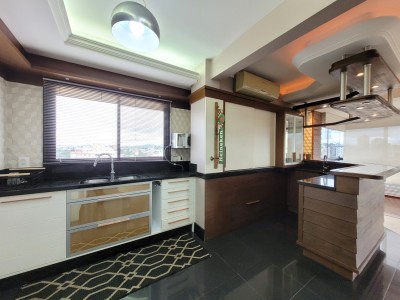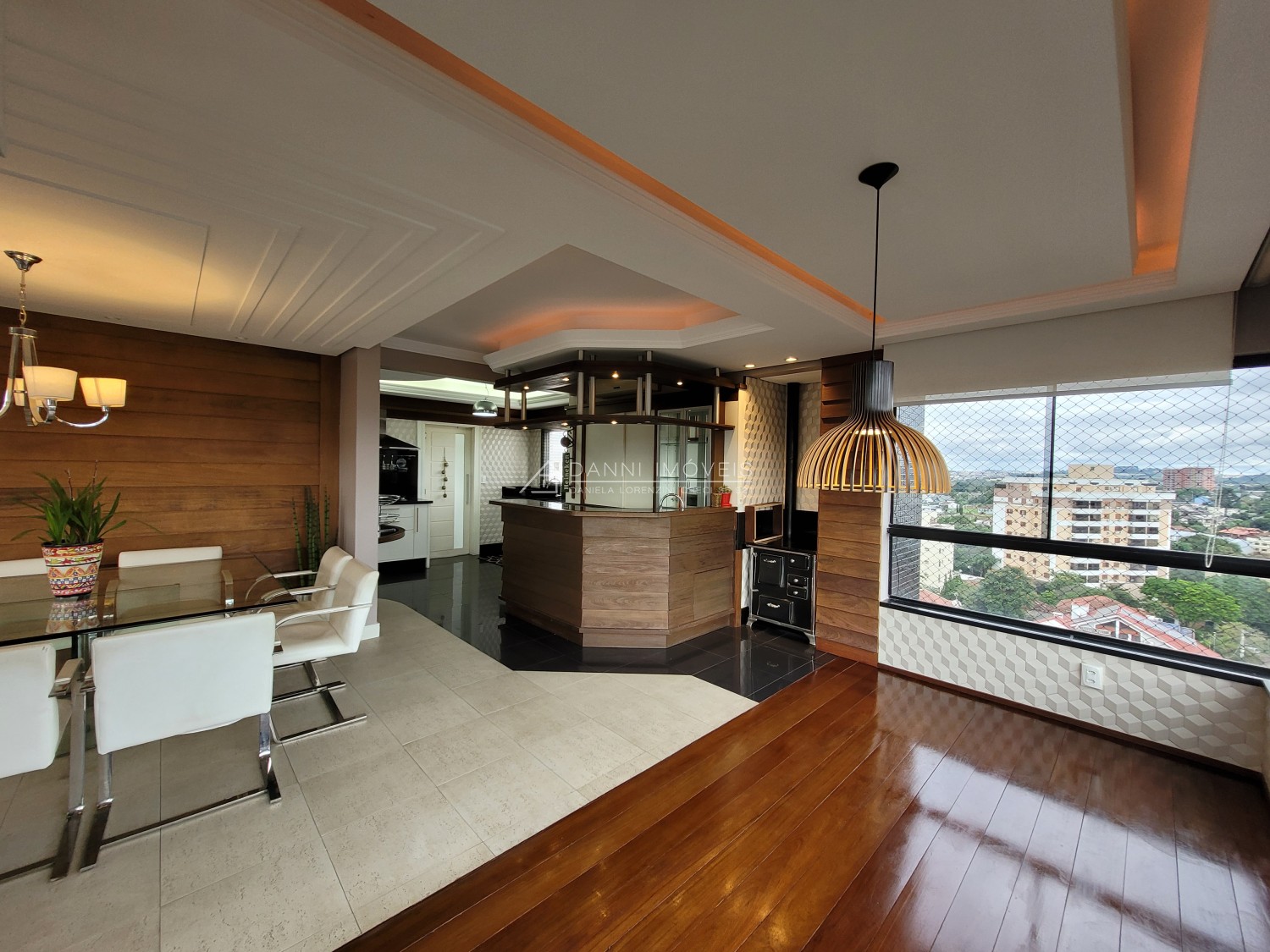 Descrição › Apartamento de 1 por andar, mobiliado! São 2 suítes americanas, 1 suíte master com closet e banheiro privativo com banheira de hidromassagem e mais 1 dormitório que pode ser utilizado com escritório. Lavabo, e banheiro social com chuveiro junto da lavanderia. Possui lareira e fogão a lenha.