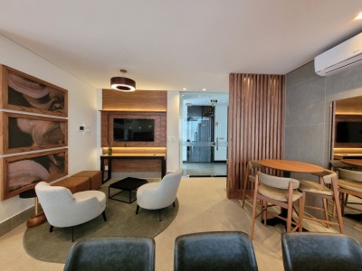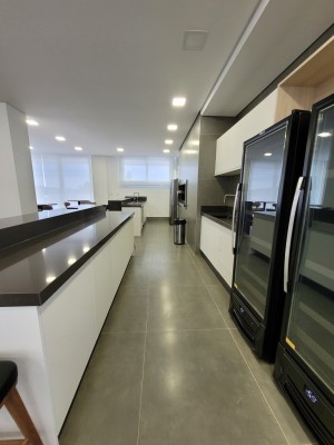 Descrição › Apartamento com 3 suítes, frente leste, 3 boxes de estacionamento e 2 depósitos junto aos boxes. Prédio com infraestrutura diferenciada. Possui lounge com piscina, salão de festas família, salão gourmet, academia, espaço kids, quadra esportiva com grama sintética.