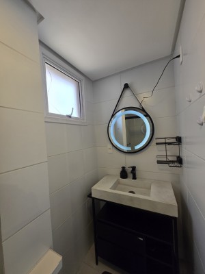 - Móvel do banheiro com louça instalada e água quente na torneira