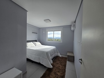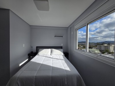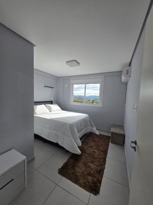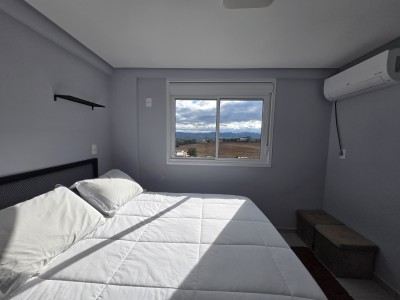- Quarto com cama box (casal) e mesas de cabeceira instaladas