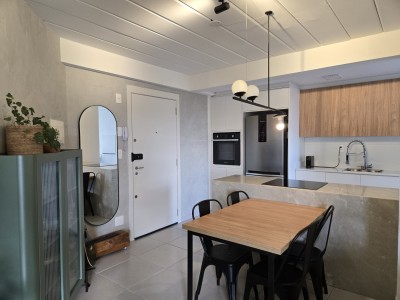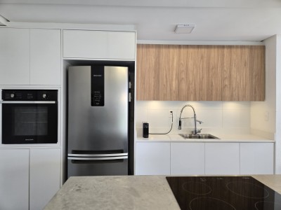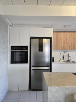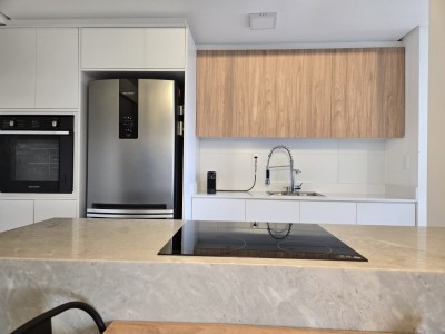 - Ilha em pedra com cooktop por indução e mesa embutida com 4 cadeiras