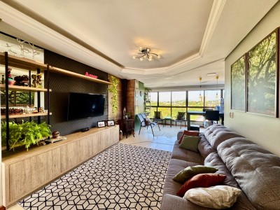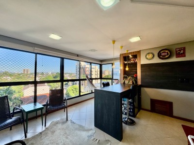 Descrição › Encante-se com este charmoso apartamento no coração do Centro de Lajeado. Com três quartos, sendo uma suíte, este imóvel semi-mobiliado (permanecem móveis planejados, splits, cortinas e iluminação) oferece conforto e praticidade para toda a família. Com um box para dois carros, esquadrias em madeira e diversas comodidades como elevador, gás central e churrasqueira, morar aqui é sinônimo de qualidade de vida. Com uma localização privilegiada, pronto para morar e com uma linda sacada integrada com vista para o Parque dos Dick, este apartamento é ideal para quem busca um lar com estilo e comodidade. Agende sua visita e encante-se!