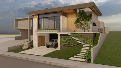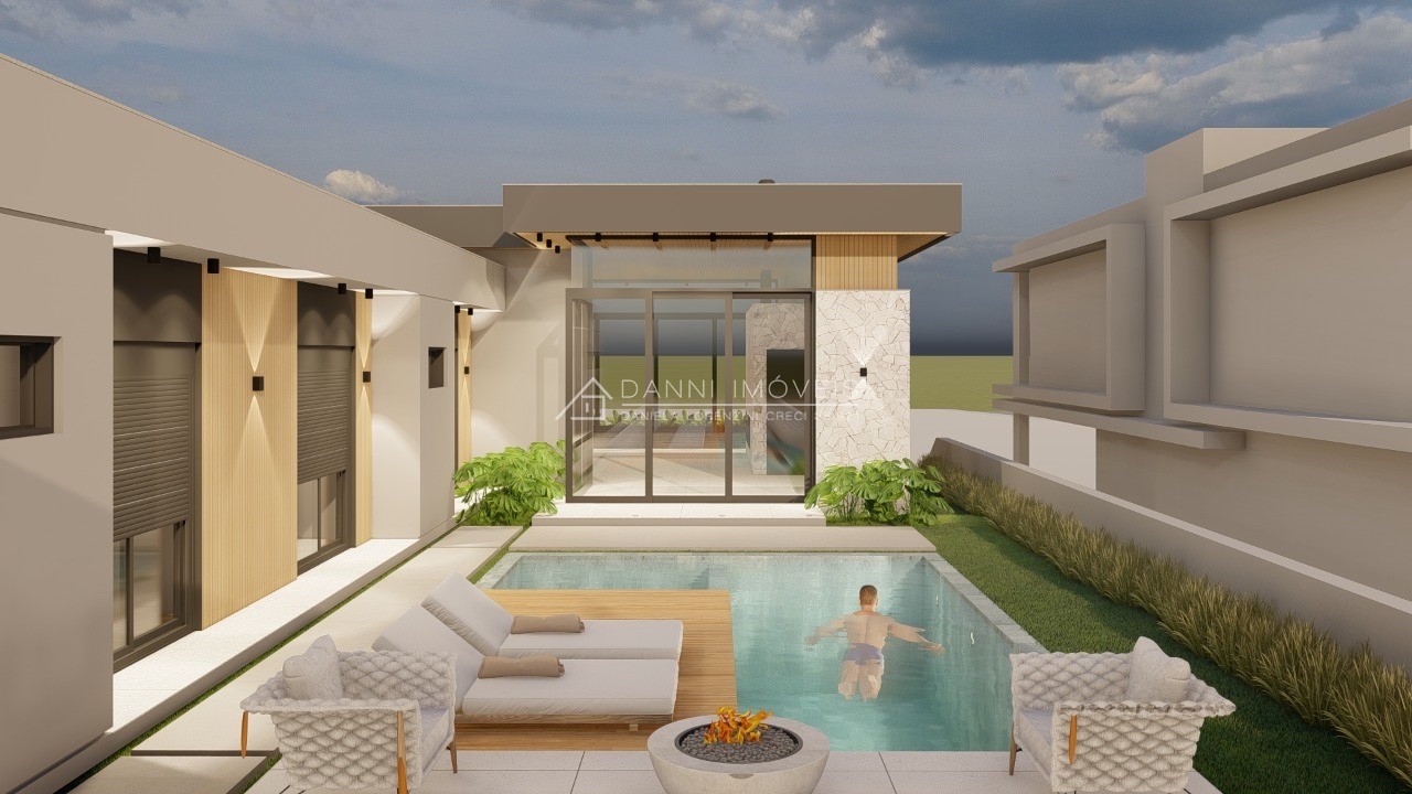 Descrição › CASA NO CONDOMÍNIO LAND HAUS, com excelente orientação solar e com 233,45m2,esta Casa conta 3 quartos, sendo 1 Suíte Principal e 2 Americanas, garagem para 2 carros, Lavabo, Área de Serviço separada, pátio com espera para piscina, ambientes sociais integrados com espaço gurmet e área para futura Adega.
