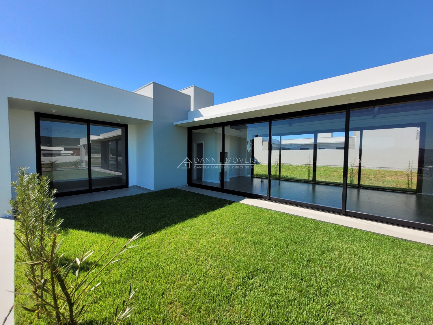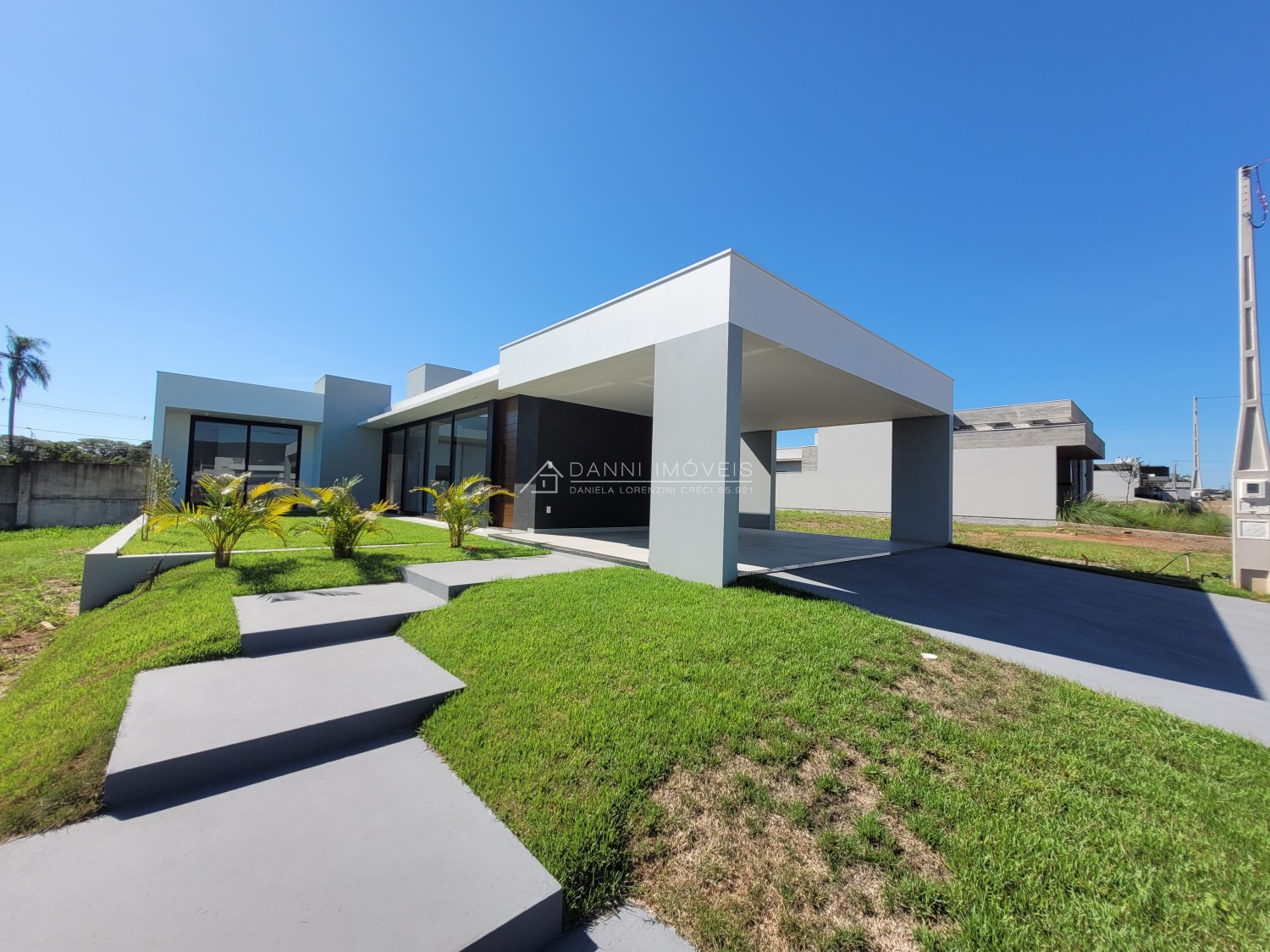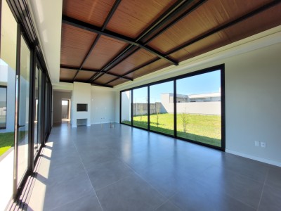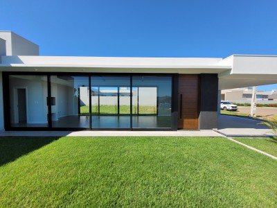Descrição › Casa Plana em Condomínio Fechado, com 170,76 m2, com 3 Dormitórios, sendo uma Suíte Master e duas Americanas, esta casa apresenta a seguinte Infraestrutura Inclusa: