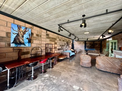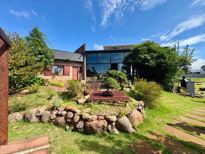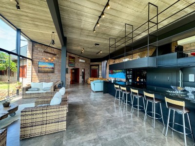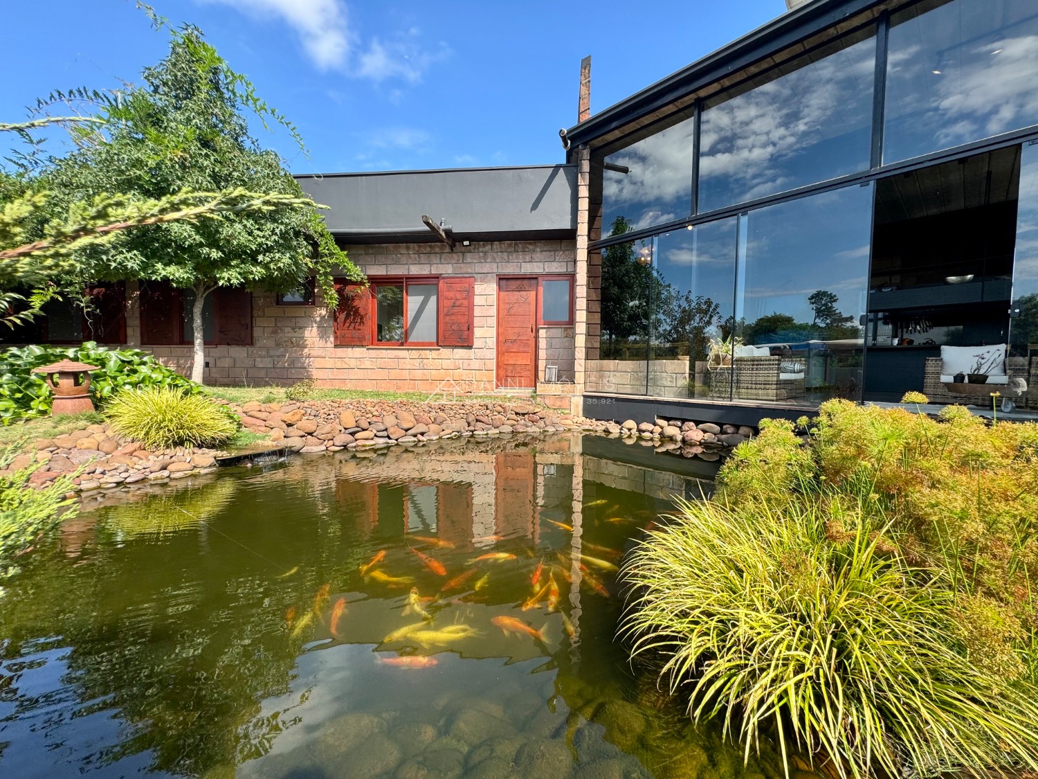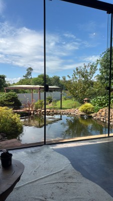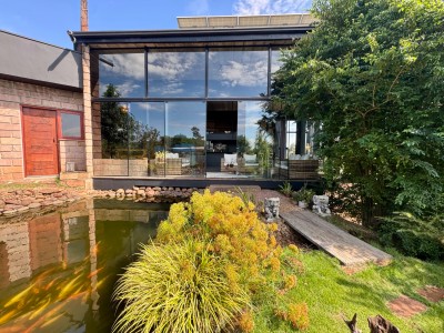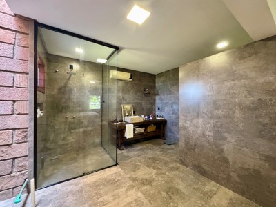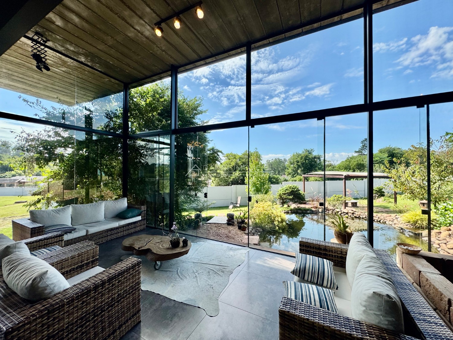 Os ambientes de uso comum são integrados ao belo jardim com lago de carpas, cascata, plantas diversas e arborização abundante através de amplas vidraças, que trazem a luz do sol pra dentro da casa, inundando todos os ambientes assim que o sol nasce!