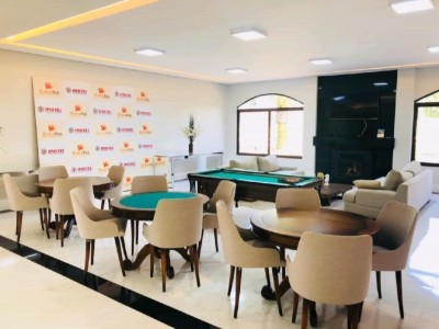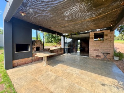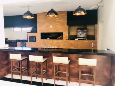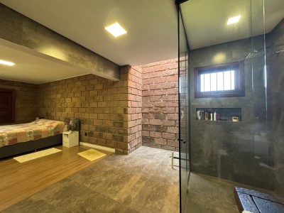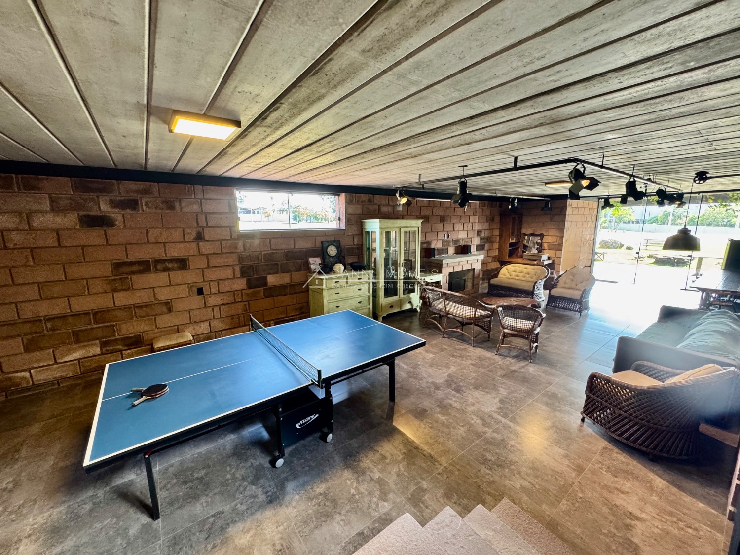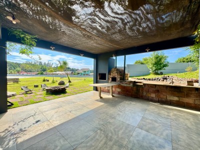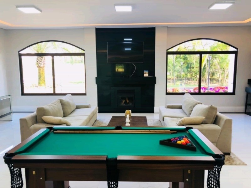 Ainda temos o pavimento abaixo junto da garagem, que contempla uma sala de jogos e estar com lareira e lavabo, integrada com a área externa da churrasqueira, ideal para recepcionar amigos e familiares com conforto e praticidade!