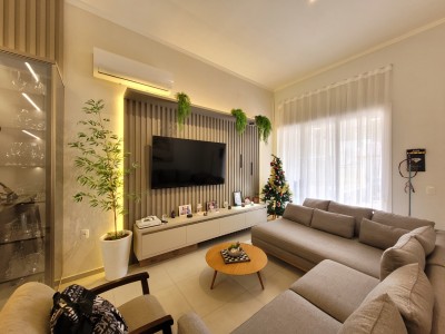Descrição › Ótima casa geminada no Bairro Jardim Botânico, seminova e com excelente orientação solar, esta linda e aconchegante casa tem 84,05 m2, 2 quartos, vaga para 2 carros, cercada e murada, semi-mobiliado, ficam móveis sob medida, splits, sofás, bancadas, embutidos e geladeira