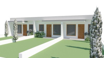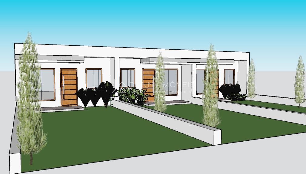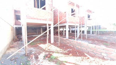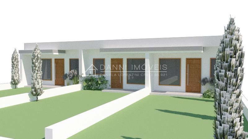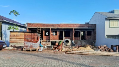 Descrição › Ampla Casa Geminada em construção, com 2 quartos, Banheiro, ambientes sociais integrados, ótima orientação solar, pátio nos fundos com acesso a um sub-solo para uso futuro no tamanho da casa, para ser usado conforme a interesse do morador