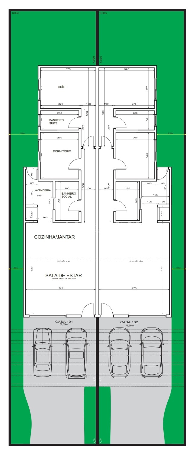 - Vaga para 2 carros lado a lado (pergolado de concreto descoberto)