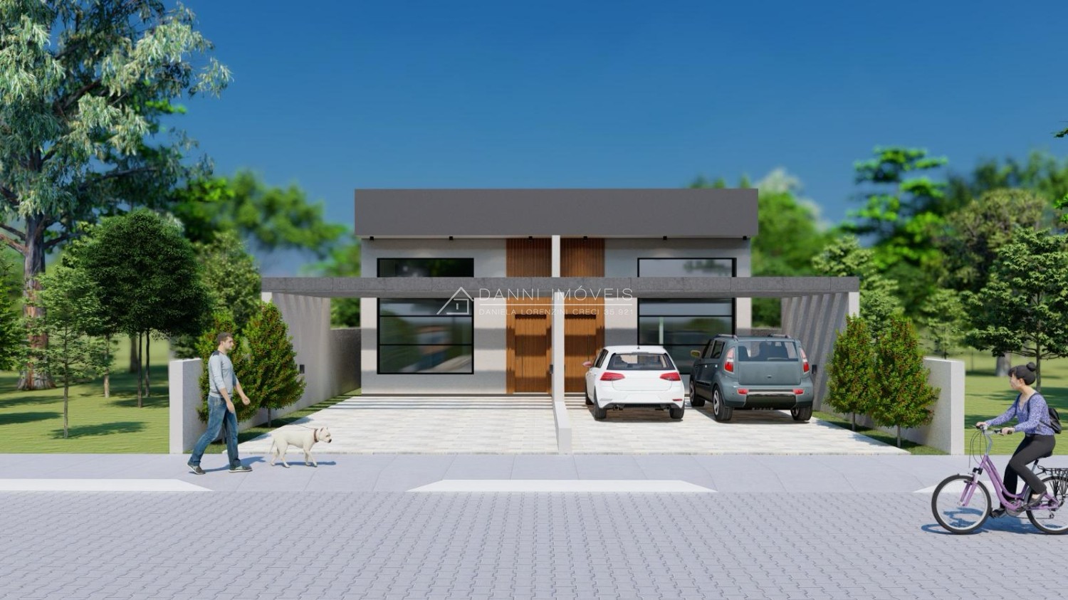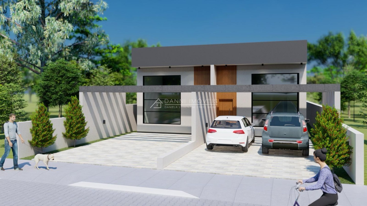 - Porta da frente com ripado amadeirado até a aba superior