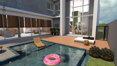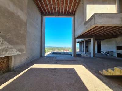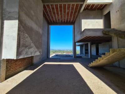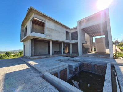 Descrição › Casa em construção, vendida no estado atual, conforme fotos. Imagens ilustrativas do projeto. Projeto arrojado e super moderno, com pé direito duplo, piscina com ilha, area gourmet junto a piscina, vista lindissima da cidade, sol da manha nos fundos.