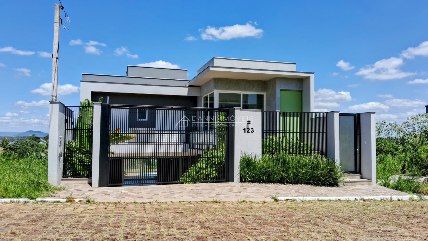Descrição › Casa com 330m2, 3 dormitórios sendo 1 Suíte, Escritório, Banho Americano, Lavabo, Piscina, Garagem ampla para 2 carros mais 2 vagas, PUB, Piscina com espera para aquecimento, gesso com cortineiros e espera para cortinas motorizadas, Churrasqueira e Cozinha nos 2 pavimentos, Gás Central/Água quente, esperas para Splits, Revestimento Classe "A", Dormitórios com laminado, Esquadrias externas em PVC Alemão REHAU com persianas automatizadas e vidros laminados para conforto térmico e acústico, Portas internas Laqueadas, Banho com Sanitários importado já instalados, Calçadas em Basalto Serrado, Paisagismo e Jardim Vertical com irrigação automatizada feitos por equipe especializada, Residência localizada em zona Nobre com vista privilegiada do nascer do Sol, toda murada /cercada com espera para sistema de segurança,