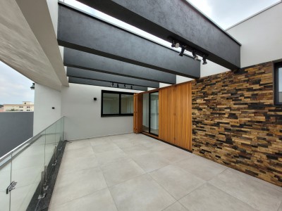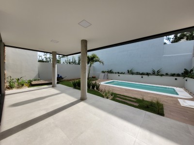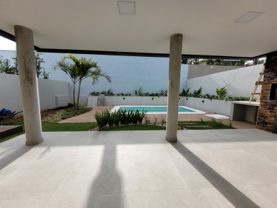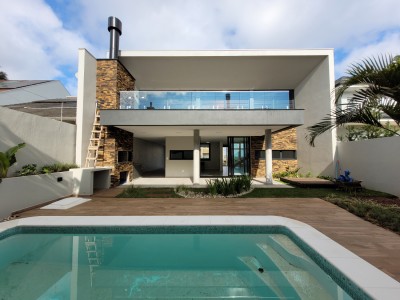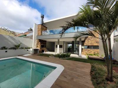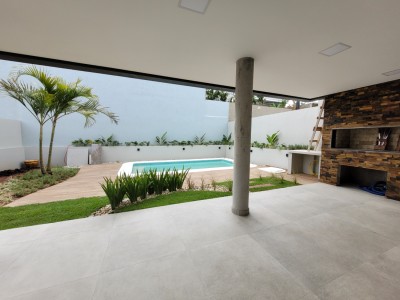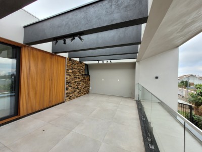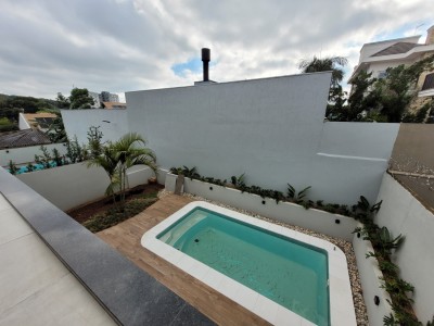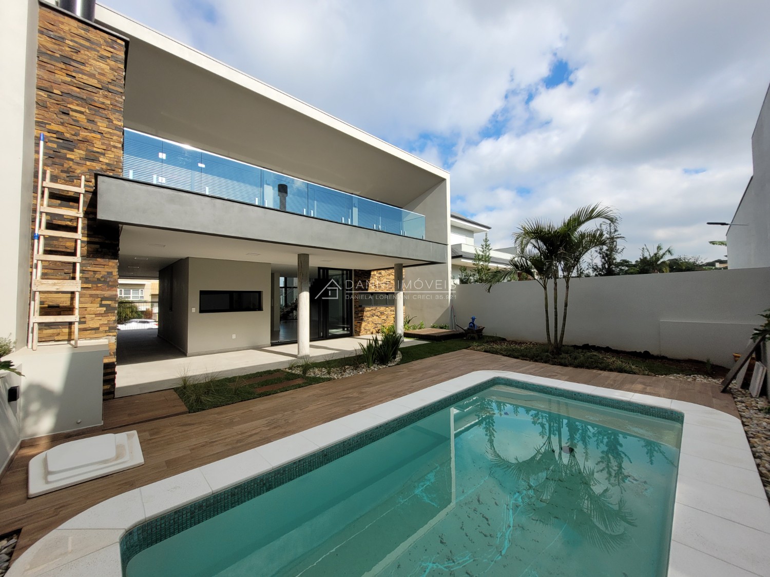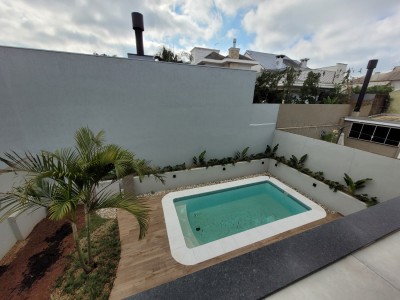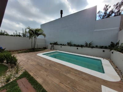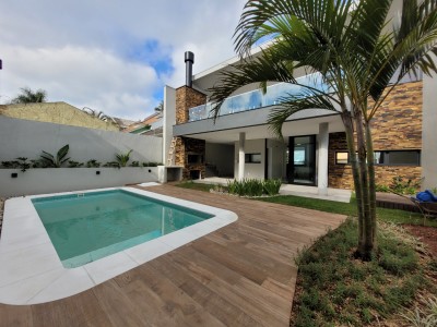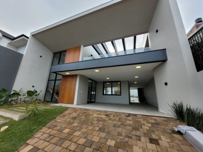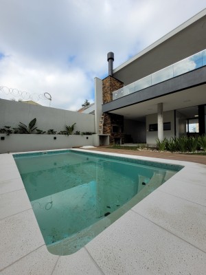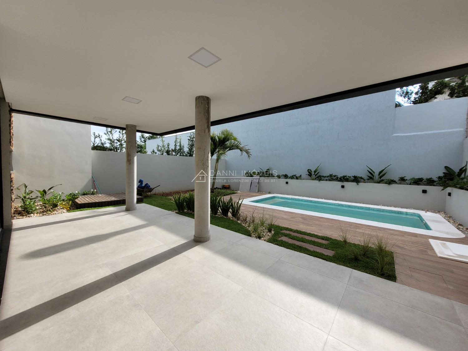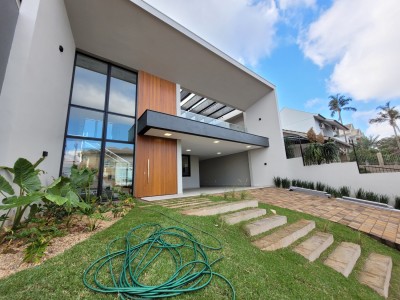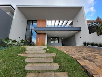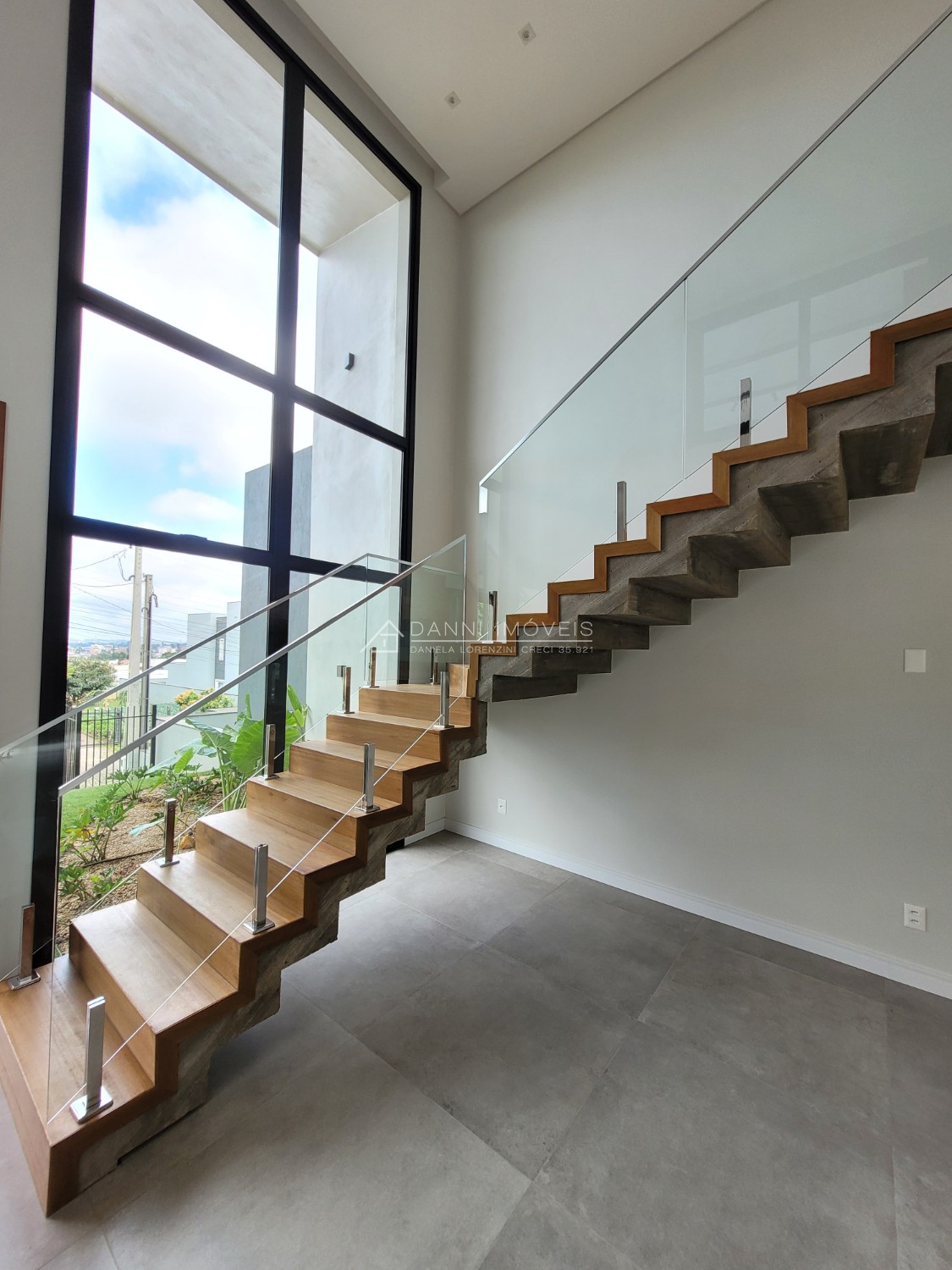 Descrição › A casa MIAMI foi pensada para atender você que gosta de sofisticação e bem estar. A casa foi toda projetada para deixar a luz natural entrar e possibilitar ao morador a integração com a área externa que contempla uma linda vista da cidade ou da piscina. independente de onde você estiver, você terá uma janela que se abre para além da casa! Se você estiver cozinhando, verá a piscina, se estiver trabalhando no escritório, verá a rua e na sala sua vista será para a cidade e seu jardim verde! Além disso, possui o pé direito duplo na sala de estar, onde a escada é uma obra de arte, um misto de madeira natural com concreto aparente. Nos fundos, além da área da piscina, temos um espaço gourmet com churrasqueira e foção de chapa onde você desfrutará de momentos inesquecíveis com família e amigos! Pra quem gosta de ter uma horta em casa, aqui já temos isso pronto! um local onde os canteiros serão um charme junto ao seu jardim.