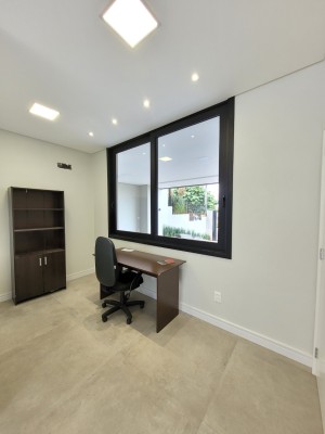 Escritório integrado, com vista para a frente e fundos, focando no bem estar do diaba dia durante o trabalho, com espaço para duas pessoas – ideal para home office ou sala de negócios/estudo/cursos.