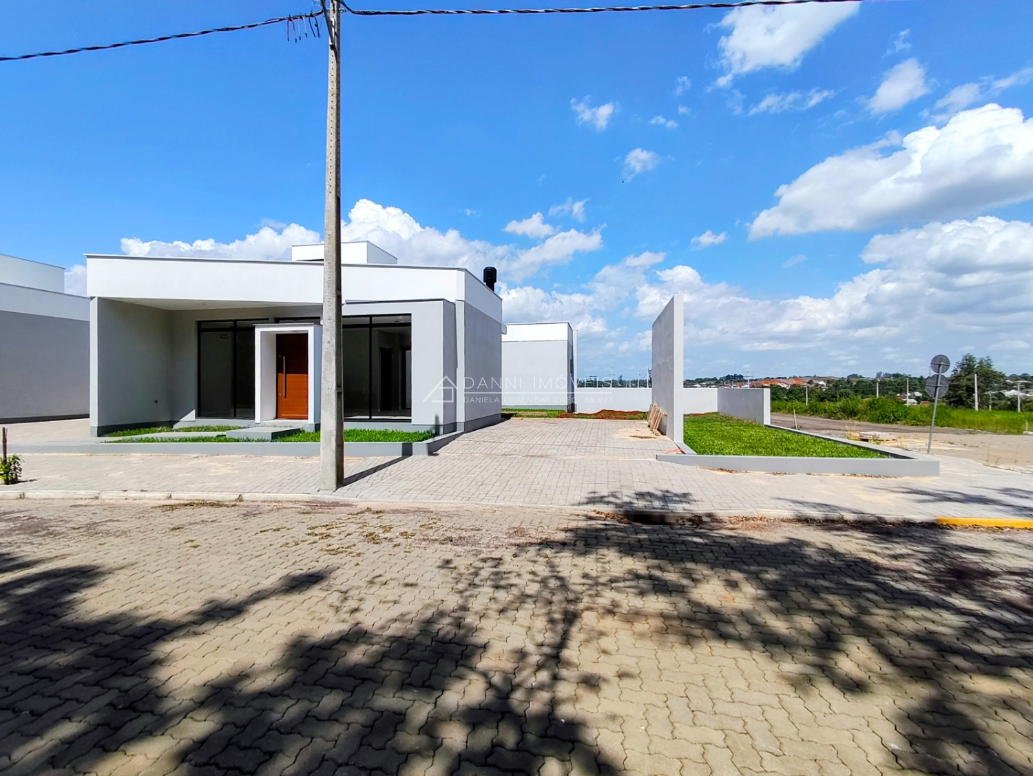 Descrição › Localizada no bairro Conventos, em Lajeado/RS, esta casa de 3 dormitórios, sendo 1 suíte, é perfeita para quem busca conforto e tranquilidade. Com uma área total de 121,86m² e área privativa de 109,36m², Cercada e murada o imóvel conta com esquadrias em alumínio, churrasqueira, piscina, garagem com Pergolado e muito mais. Em fase final de acabamentos, possui acabamentos de qualidade e está cercado por natureza. Não perca a oportunidade de conhecer essa bela residência!