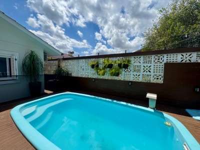 Descrição › Encante-se com esta charmosa casa localizada no bairro São Bento, em Lajeado/RS. Com 3 dormitórios, sendo 1 suíte, e 2 banheiros, este imóvel semi-mobiliado (permanecem móveis planejados, iluminação)oferece todo conforto e comodidade que você procura. Além disso, conta com uma ampla área de lazer com churrasqueira, piscina com aquecimento solar e deposito. Na área da garagem, espaço para você guardar seu barco ou carro antigo! Venha conhecer e se encantar com cada detalhe desta casa dos seus sonhos!