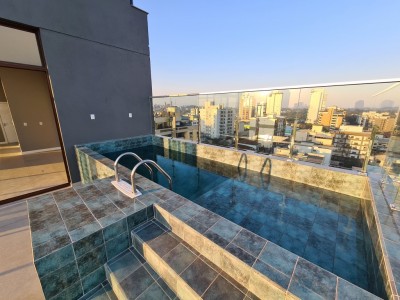 Descrição › Cobertura duplex mobiliada com piscina, 3 boxes e depósito na garagem.