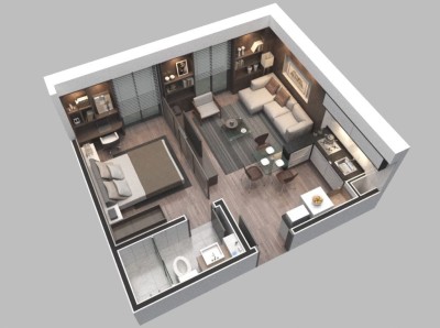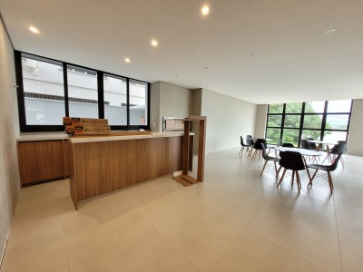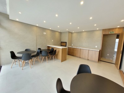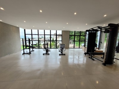 Descrição › O empreendimento conta com dois elevadores de última geração, amplo hall de entrada decorado e mobiliado, academia, salão de festas e dois espaços gourmet decorados e mobiliados integrados à uma ampla área de convivência em terraço pergolado.