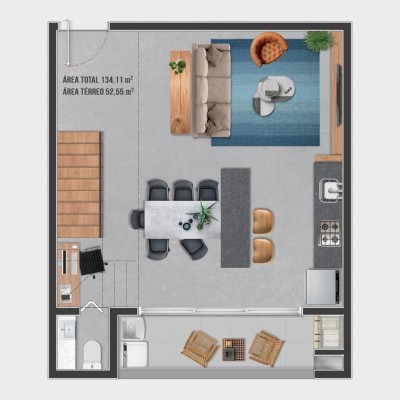 Descrição › PAVIMENTO INFERIOR: AMBIENTE DE SALA, COZINHA ,LAVABO, FUNDOS COM CHURRASQUEIRA E LAVANDERIA, MEZANINO PISO LAMINADO, SUPERIOR COM TERRAÇO PISO GRAMA SINTÉTICA E ESPERA PARA JACUZZI( OPCIONAL). ACABAMENTOS EM CONCEITO LOFT, ABERTURAS EM ALUMINIO PRETO, 1 VAGA DE GARAGEM, UNIDADE DO MEIO