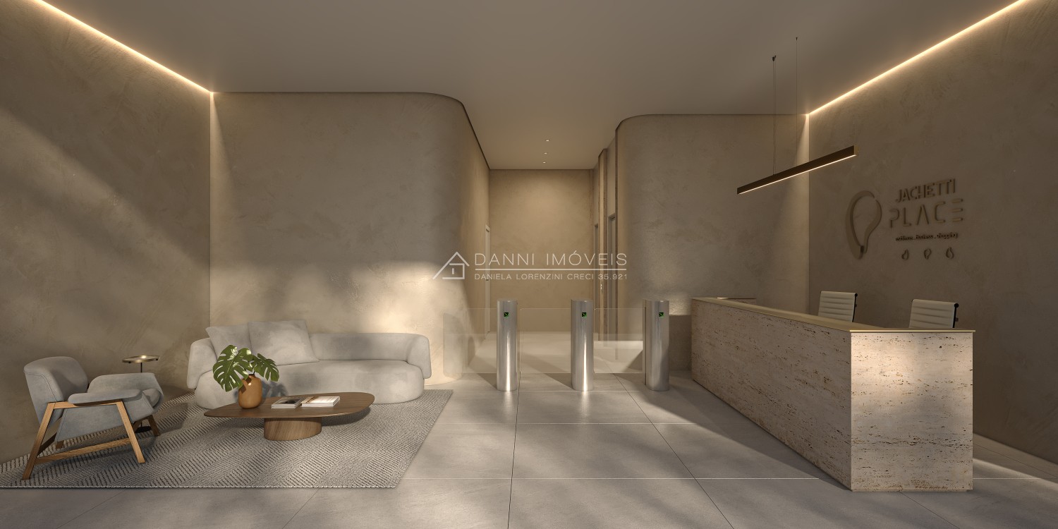 Descrição › O complexo JACHETTI PLACE, conta com 2 Torres, sendo uma comercial e outra residencial. Voltada para a Avenida Avelino Talini temos a Torre Comercial, com salas todas com 1 lavabo, sendo lojas térreas e salas (7 unidades por andar). São 2 elevadores sendo 1 maca-leito e 2 lavabos (1 PNE) em cada andar e corredores amplos facilitando a locomoção do dia a dia.