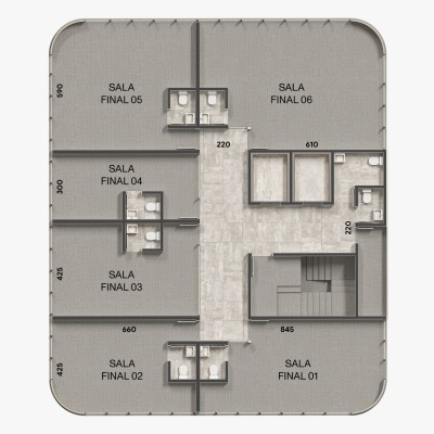A Torre residencial é composta por unidades sendo 5 por andar, distribuídas entre apartamentos de 2 dormitórios (1 suíte), 2 dormitórios compacto, JK e 2 belas coberturas. A Torre Residencial conta com salão de festas e academia no 4º andar, 2 elevadores e sacadas nos apartamentos (exceto JK). As Torres são unidas por uma ampla Esplanada com lojas e espaços biofílicos, trazendo conforto e comodidades a moradores e clientes. Possui salas e apartamentos no 4º andar com terraço!! Disponível para compra Box de Estacionamento para salas e apartamentos!