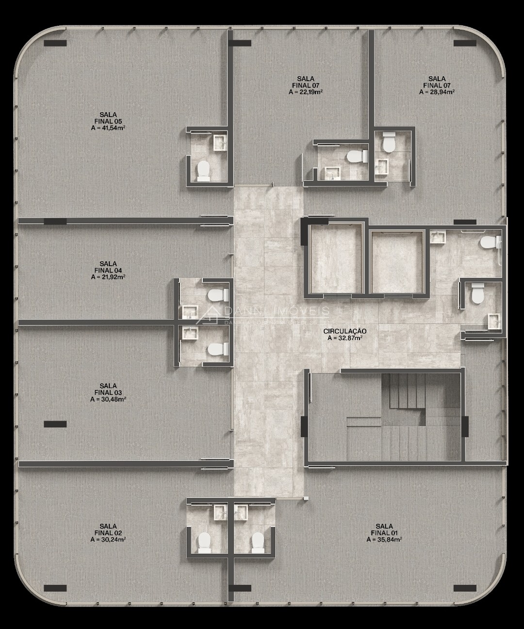 Descrição › O complexo JACHETTI PLACE, conta com 2 Torres, sendo uma comercial e outra residencial. Voltada para a Avenida Avelino Talini temos a Torre Comercial, com salas todas com 1 lavabo, sendo lojas térreas e salas (7 unidades por andar). São 2 elevadores sendo 1 maca-leito e 2 lavabos (1 PNE) em cada andar e corredores amplos facilitando a locomoção do dia a dia.