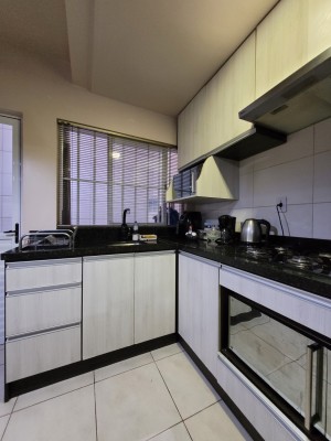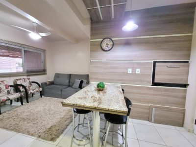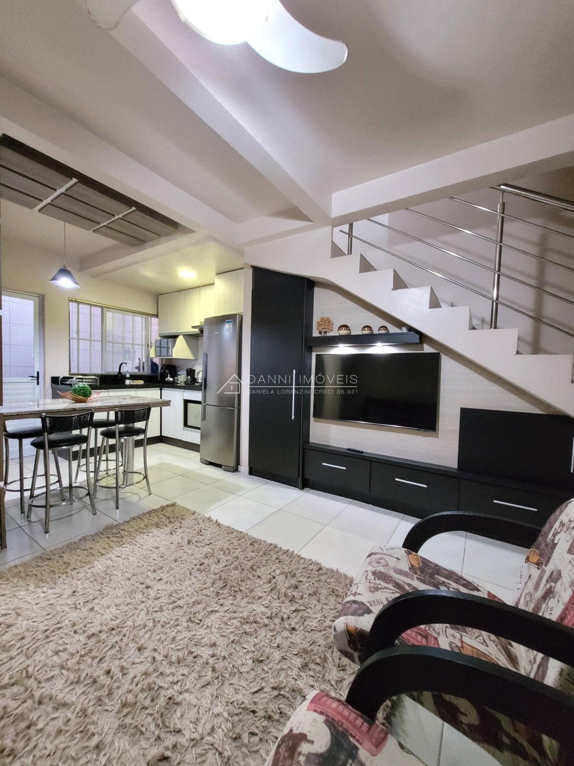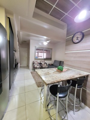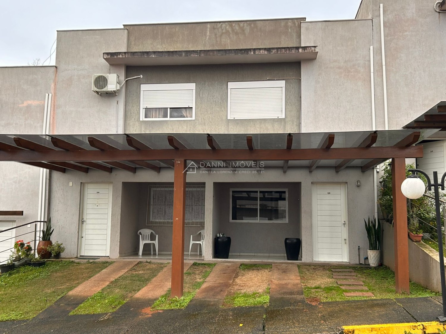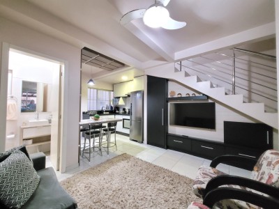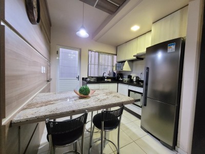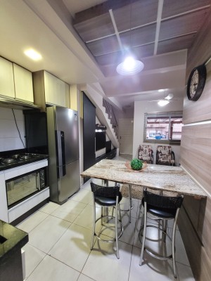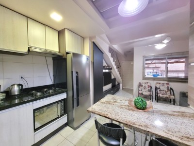 Descrição › Sobrado de 02 dormitórios, condomínio fechado, piso cerâmico, lavabo, banheiro social, cozinha e área de serviço conjugados. garagem coberta na frente da unidade, permanecem todos os moveis planejados da cozinha (sem a torneira) com o cooktop, painel da sala, banheiros, dormitórios, splits, iluminação e persianas. (saem tv's, geladeira, forno elétrico e micro-ondas, sofá, poltronas, aparador com espelho do corredor e camas)