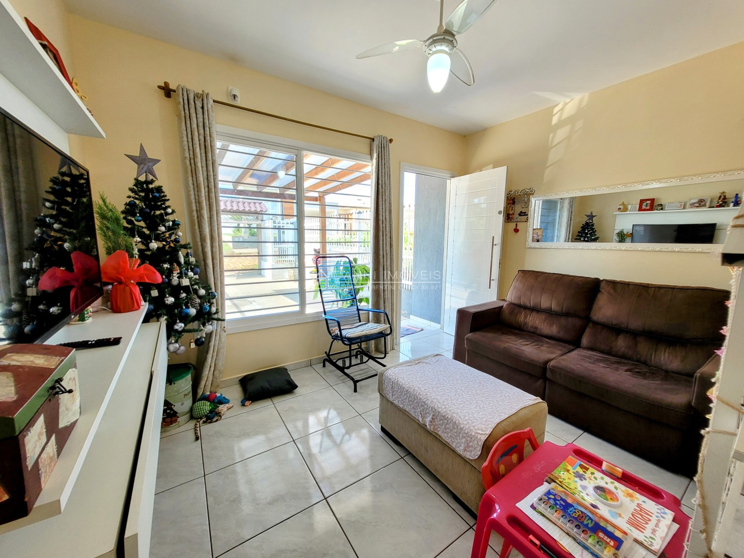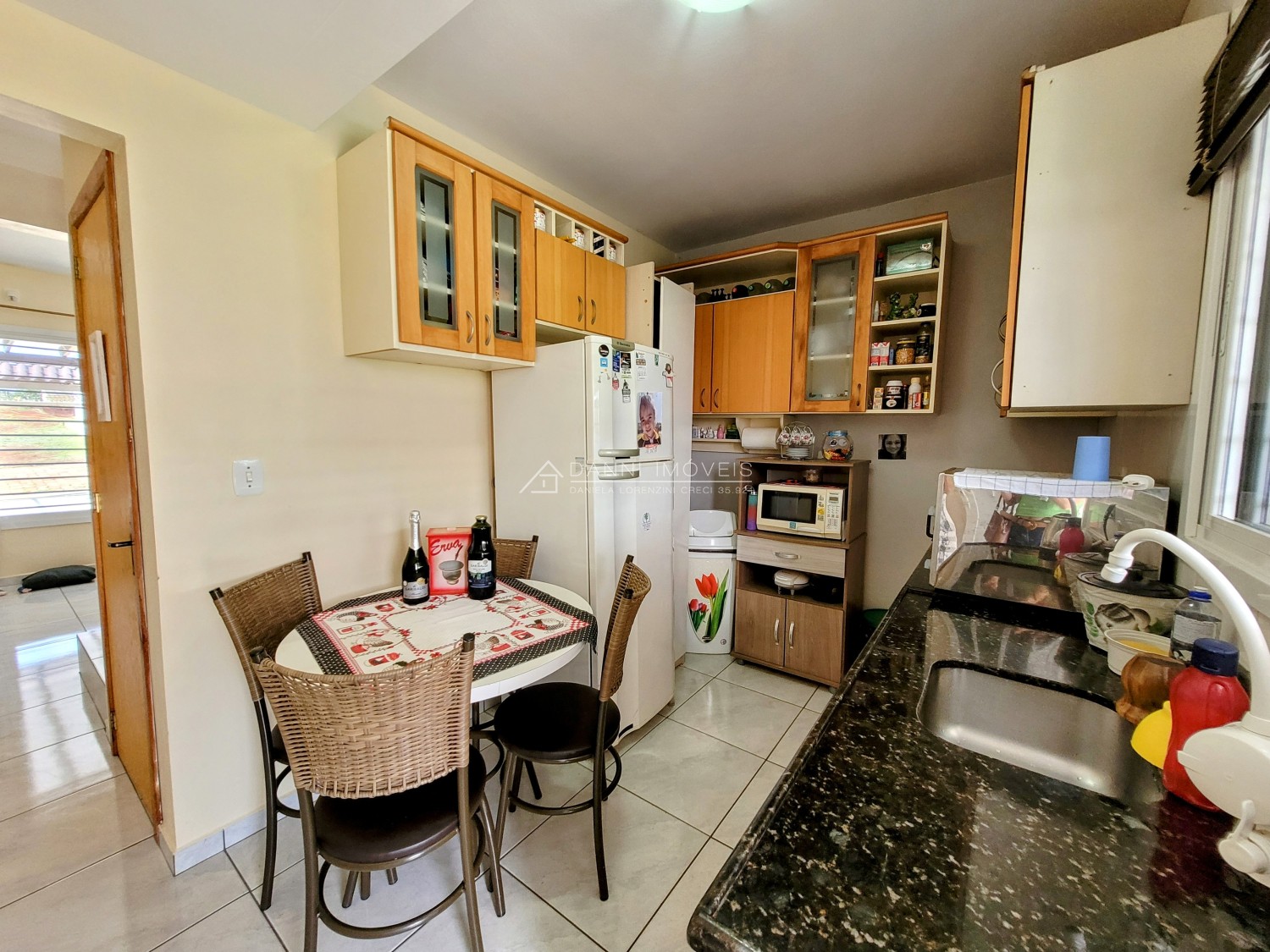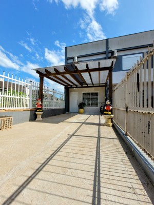 Descrição › Sobrado com amplo pátio a poucos metros da BR386, com fácil acesso ao centro da cidade! Permanecem móveis planejados da cozinha, banheiro social e 2 splits.