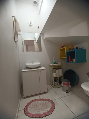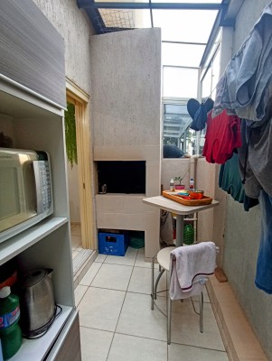 Descrição › Sobrado com 2 quartos no Bairro Bom Pastor em Lajeado, banheiro, lavabo, sala e cozinha integrados com rebaixo em gesso, churrasqueira, área de serviço fechada, estacionamento coberto com estrutura metálicas e vidro 10mm, pronto para morar