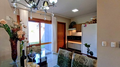 Descrição › Localizado no bairro Conventos, em Lajeado/RS, este sobrado semi-mobiliado conta com 2 dormitórios, banheiro, churrasqueira, cozinha, garagem aberta, jantar e estar integrados, pátio e portão eletrônico. Com área total de 74,46m², o imóvel está pronto para morar e possui esquadrias em madeira, rebaixo em gesso e split. Ideal para quem busca conforto e praticidade, venha conhecer essa excelente opção de moradia.