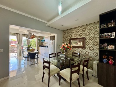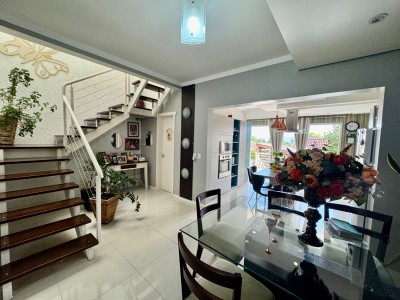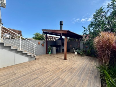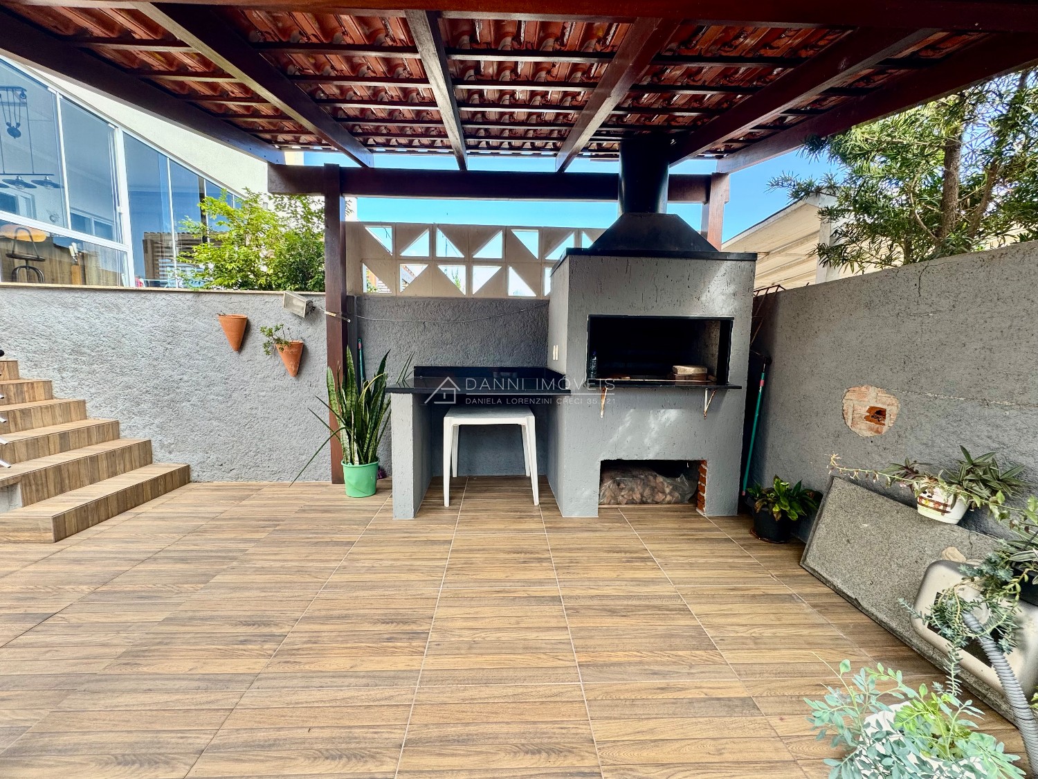 Descrição › Sobrado encantador no bairro Universitário, em Lajeado/RS. Com 3 dormitórios, sendo 1 suíte, este imóvel semi-mobiliado (permanecem móveis planejados, splits, iluminação e persianas), oferece conforto e praticidade para sua família, tendo na região escolas, padaria, mercado, pet shop.. Com uma área total de 172,91m², possui churrasqueira, lareira, espera para piscina e quiosque. Além disso, conta com acabamentos de qualidade, como esquadrias em alumínio e massa corrida. Com todos esses diferenciais, este sobrado é o lugar ideal para você chamar de lar. Venha conhecer e se encantar!