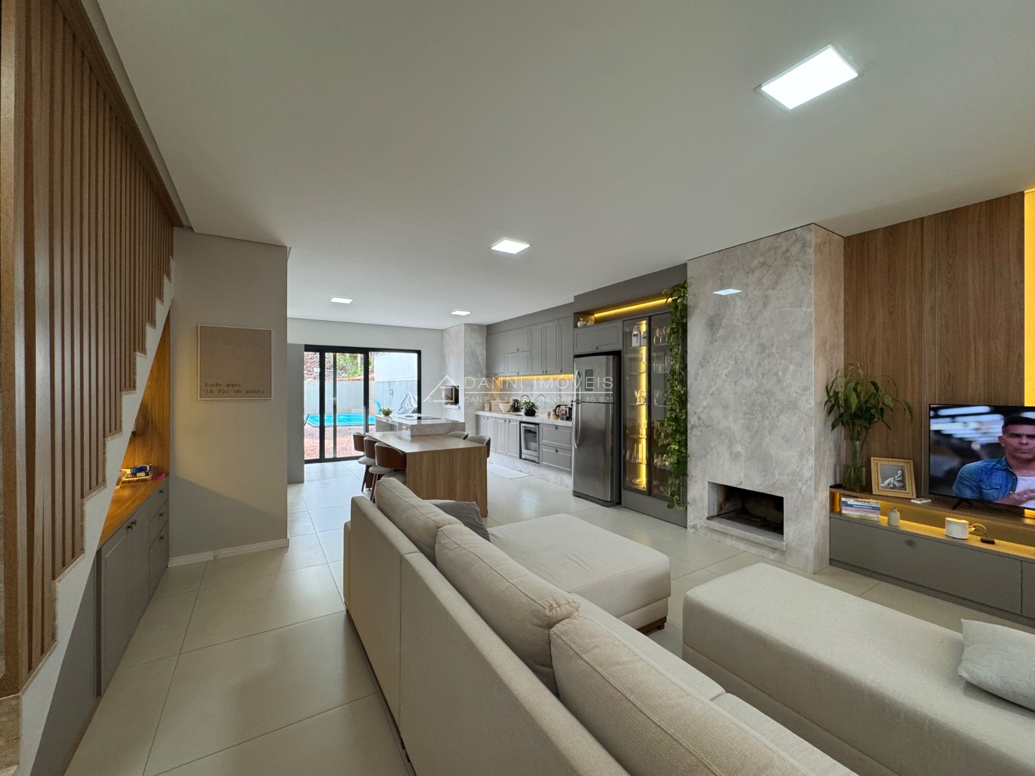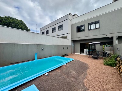 Descrição › Encantador sobrado à venda no bairro Universitário em Lajeado/RS. Com 3 dormitórios, sendo 1 suíte, este imóvel semi-mobiliado (permanece todo o mobiliário sob medida, splits, iluminação, cortinas, sofá, banquetas, geladeira, fogão e coifa), oferece conforto e praticidade para toda a família. Com uma área total de 182m², possui churrasqueira, lareira, piscina e um amplo pátio. Além disso, conta com escritório, garagem para 2 carros, portão eletrônico, água quente. Pronto para morar e com ótima localização, este sobrado é perfeito para quem busca qualidade de vida e bem-estar. Agende sua visita e se encante com essa oportunidade!
