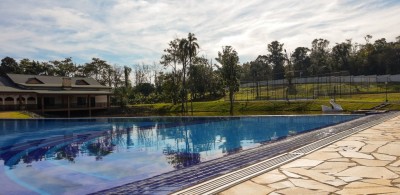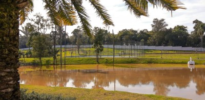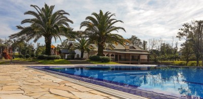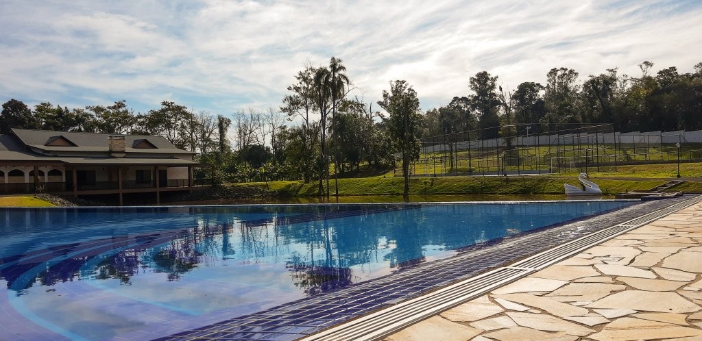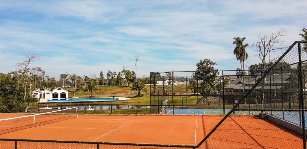 Descrição › Quadras de tênis, Quadras de padel, Quadras de futebol 7, Quadra Poliesportiva, Piscina Adulto e Infantil, Salão de festas mobiliado, Brinquedoteca, Sala de Jogos, Espaço Cinema, Espaço fitness com Academia, Sala de Massagem e Sauna, Trilha de Caminhada, Heliponto, Pomar, Horta e Quiosque com churrasqueira. Guarita com segurança 24 hrs, Condominio estimado em R$ 300,00 mensais. Lotes com metragem mínima de 450,00 m²