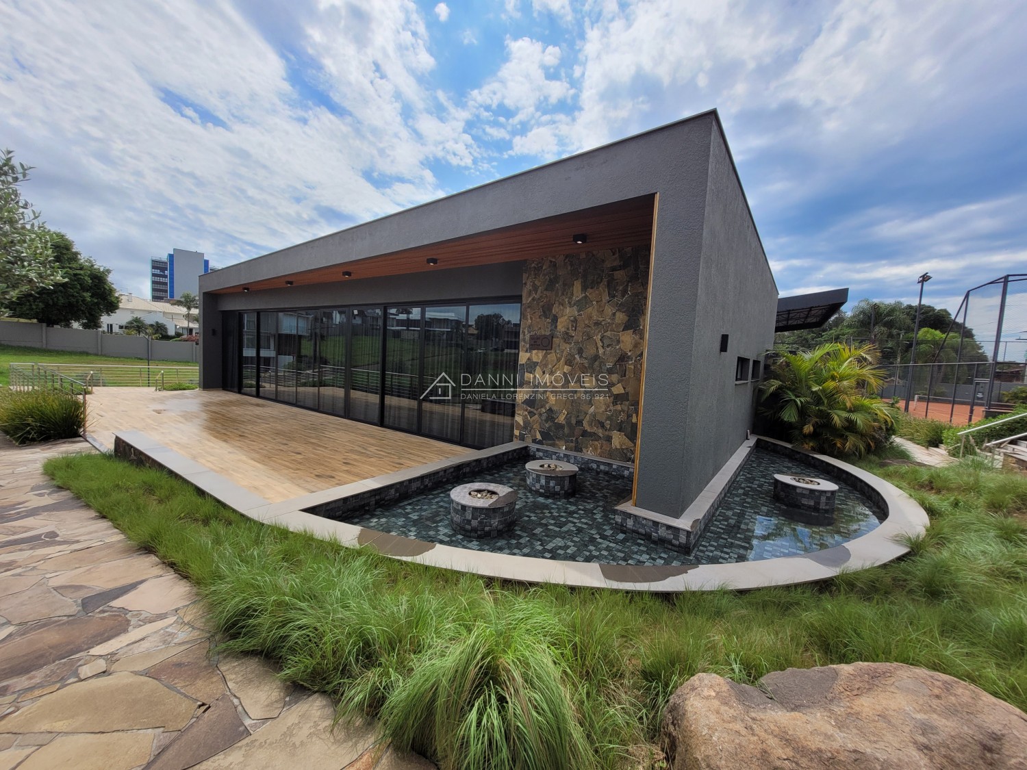 Descrição › O requinte de viver bem. O condomínio é a união perfeita entre a comodidade de estar perto de pontos estratégicos, como a Univates, e também do centro da cidade. Lotes de 400,00m² até 820,00m², Localização excelente com vista panorâmica, iluminação subterrânea, entrada social e de serviço, totalmente murado e com moderno sistema de segurança, pavimento interno de asfalto e paisagismo diferenciado com ampla área verde. Salão de festas para 120 pessoas, Câmeras, sensores e cerca elétrica, 2 quiosques para 20 pessoas cada, Quadra de tênis, Guaritas blindadas, Cancha poliesportiva, Quadra de pádel coberta, Sistema de coleta de água da chuva para irrigação, Playground para crianças, Irrigação automática para áreas do condomínio, Academia totalmente equipada, Coleta de lixo interna feito pelo condomínio, Espaço Kids, Sala de jogos. Financiamento facilitado direto com a Loteadora.