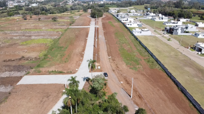 Descrição › Loteamento residencial com restrição de metragem de construção (mínimo de 80 m2), limite de 2 casas por lote. 3 bosques. Ruas pavimentadas. Fácil acesso à BR 386.