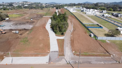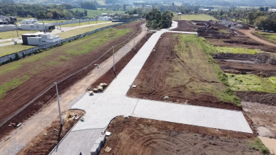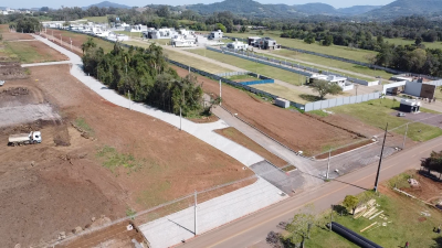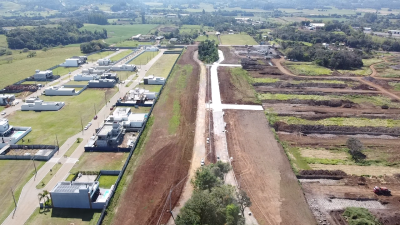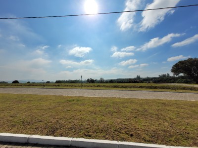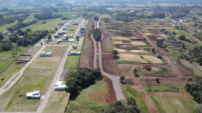 Descrição › Terreno plano com sol da manha na frente do lote e sol da tarde nos fundos. Loteamento residencial com restrição de metragem de construção (mínimo de 80 m2), limite de 2 casas por lote. 3 bosques. Ruas pavimentadas. Fácil acesso à BR 386.